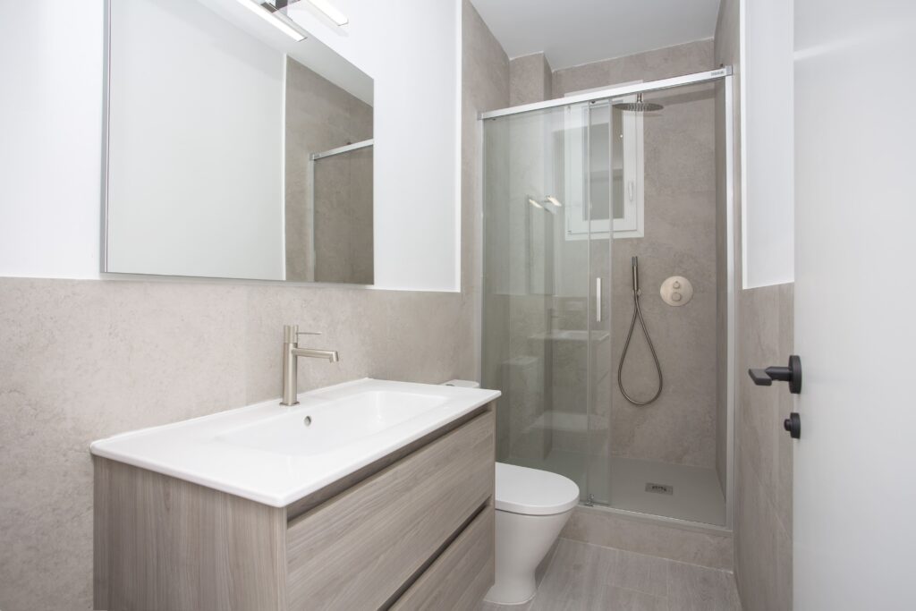 El proyecto incluyó la creación y renovación de tres baños completos y un lavadero independiente, fundamentales en una vivienda pensada para varios inquilinos. Todas las instalaciones se actualizaron para garantizar fiabilidad, durabilidad y facilidad de mantenimiento.